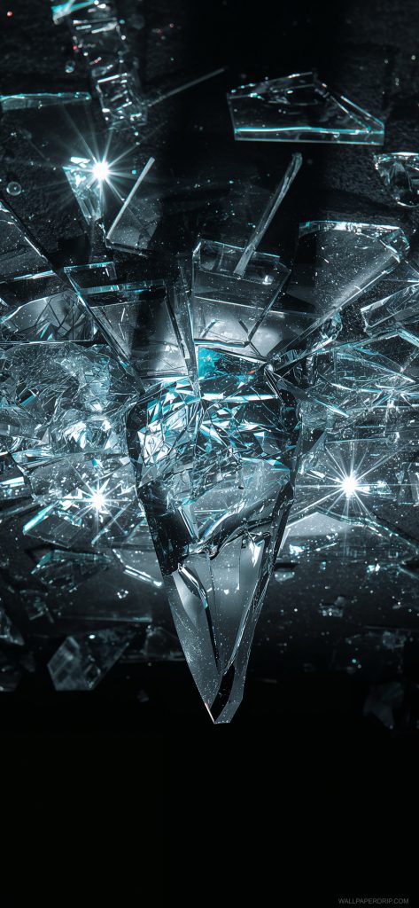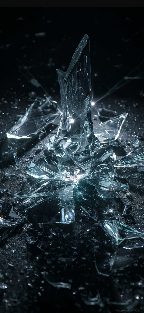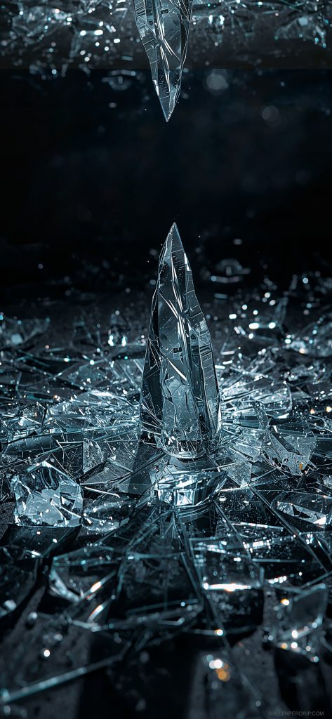 These wallpapers turn your screen into a cinematic scene of shattered glass and glowing crystal shards.